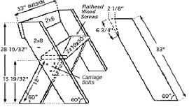 Materials: One 2x6x33″, one 2x10x30″, one 2x8x10′, six 3/8″x 31/2″ carriage bolts with washer and nut, twelve 3/8″ x 31/2″ #12 or #14 flathead wood screws. Use Douglas Fir for your Leopold bench, if you can, and customize its size to suit you. The materials listed will make a 33″ bench, but you may choose to build out to 48″.