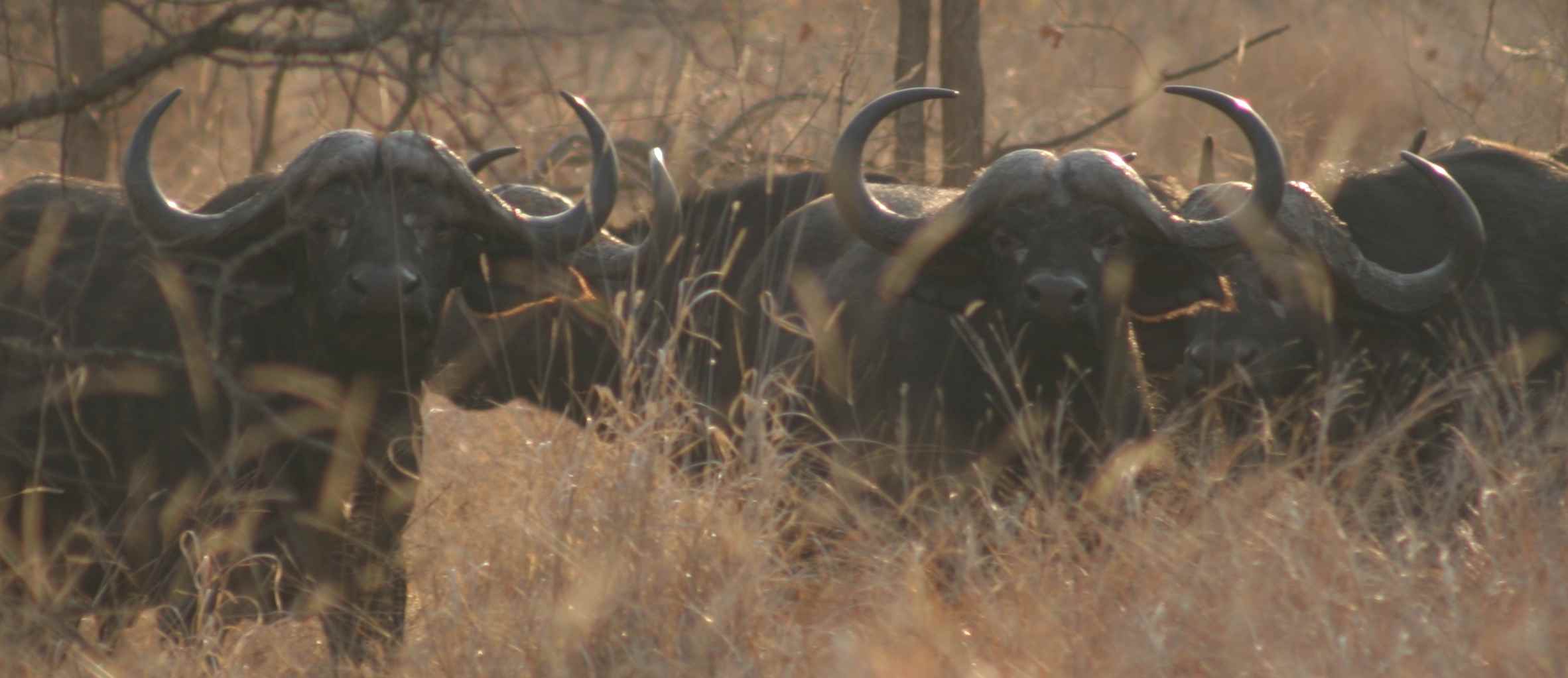 Yesterday evening Clive and I planned a walk, to dust the cobwebs gleaned from a day of internet interaction. Descending the steep driveway to the base of our hill, atop which perches our Tsaven house, with hand-carved walking sticks as weapons and preceeded by two bouncing Jack Russells, we turned clockwise to perambulate around our hill. We did not get very far. A deep growling greeted us from the long grass, encouraging us to turn tail all and retreat. No sight of cat did we get, but we heard cat and felt cat. Anti-clockwise we went, and on approaching our waterhole we discovered the reason for cat presence-twenty buffalo, waiting to drink, stood watching us and then huffed away between the mopani trees.