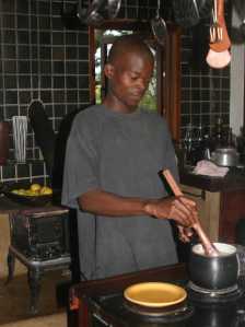 An early morning start and delicious sorghum porridge for breakfast is the order of the day. Ably cooked by Anderson in our Tsavene kitchen.