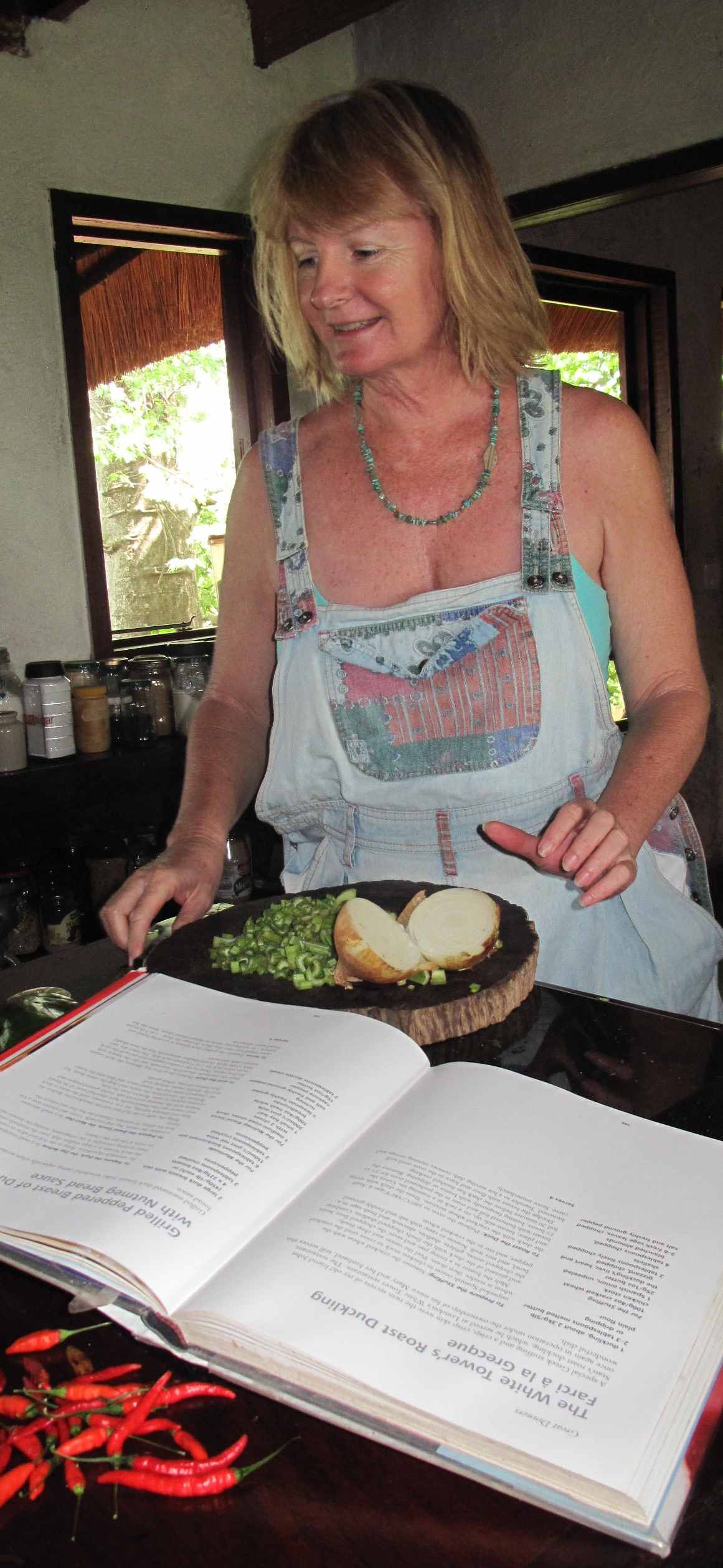 Kelli finely chops green pepper, onion , one red chilli, heart, liver and gizzard for the stuffing.