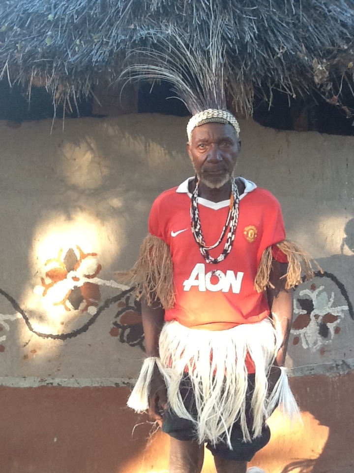 We drive into a family compound in the Mahenye village to watch two dance teams display their prowess, before they head off to the Harare Carnival…The painted huts are a delight….I am always struck by the beauty and intensity of the colour that the artists achieve with natural earth and ash pigments.