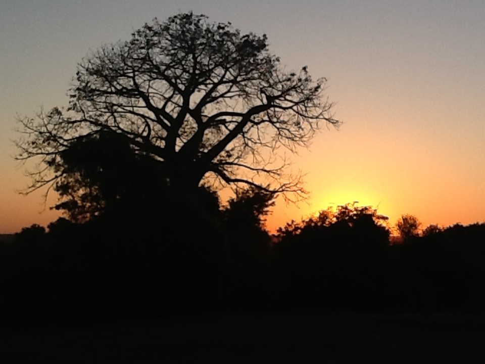 A sunset backed by a monumental baobab in the Mahenye Village, marks the end of the satisfying day……