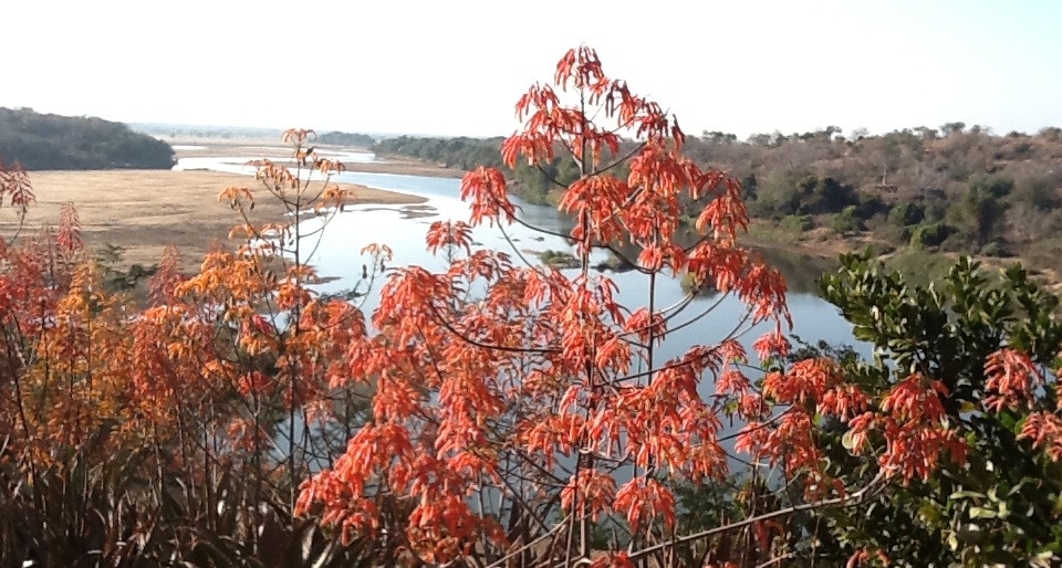 I wander down to the aloe gardens , facing downstream, and marvel yet again at the glorious burst of colour from the massed Chabaudii aloes that Dad planted here only one season ago. The hum of busy bees increases as the suns rays intensify. White bellied and Scarlet chested sunbirds are intent on vying with the bees for sips of sweet aloe nectar, and bulbuls argue over the tastiest flowers to pluck and devour…all is bursting with life, a joyous way for me to start the day, in one of my favourite gardens…..