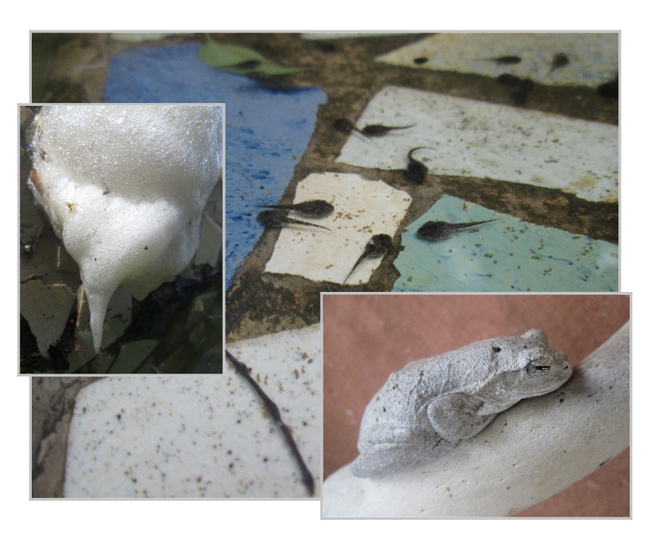 Chiromantis frogs have deserted the dry season haven of our house, to go forth and build their nests of foam over every pool of water. Some nests hang as high as four metres up in trees overhanging the water!