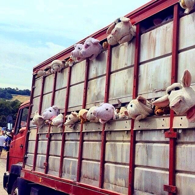 http://news.artnet.com/in-brief/banksys-truck-full-of-wailing-toy-animals-turns-up-at-glastonbury-49185