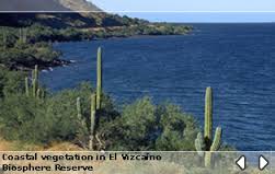 El Vizcaíno Biosphere Reserve is Mexico’s largest protected area. Ecosystems found within the reserve include arid zones, dunes and a 5 km-wide littoral zone along its 450 km of coast. The reserve also includes three gray whale sanctuaries …..
