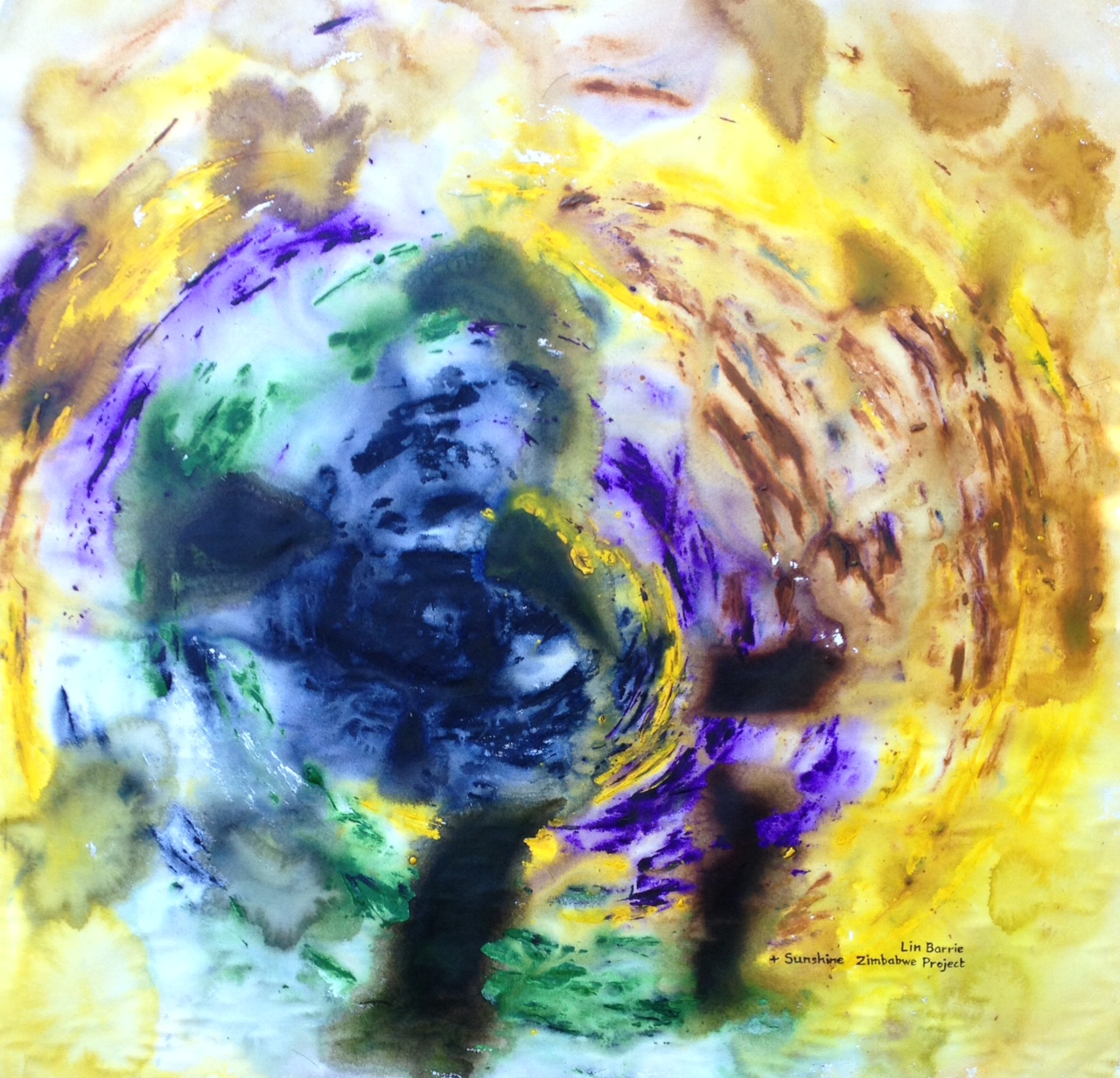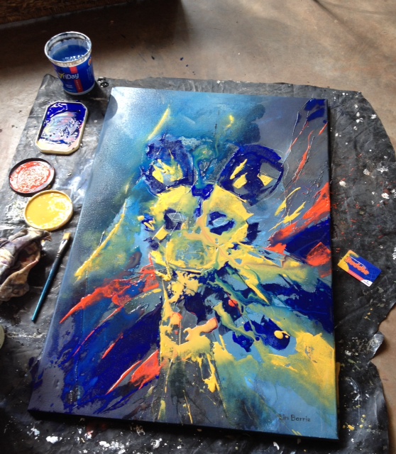I paint the canvas background…a whirlwind of colour…