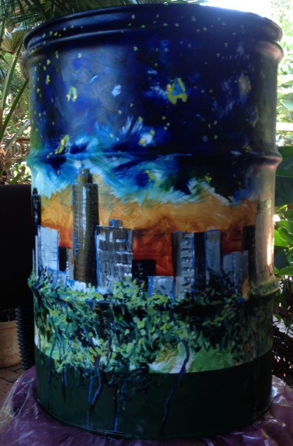 My bin incorporates the Harare city skyline, Van Gogh -type starry sky….