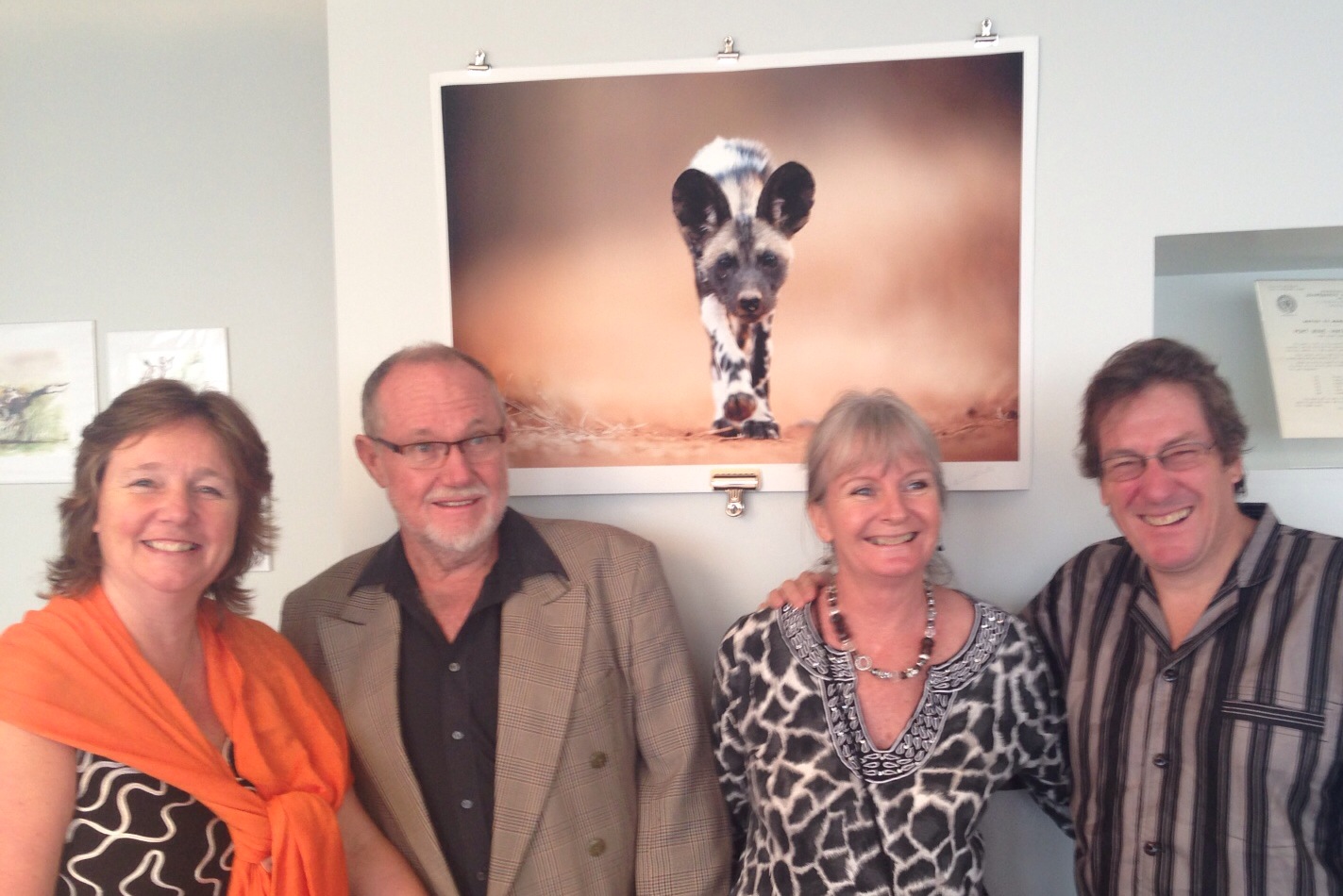 Emma, Clive, Lin and Jeremy in front of Kim Wolhuters dramatic photograph…