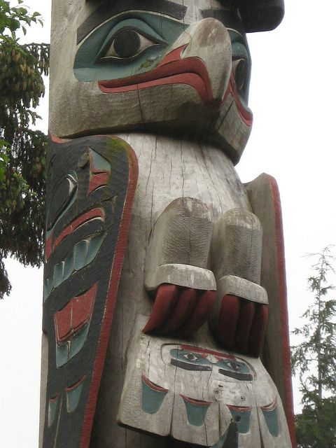 Totem poles also depict traditional narratives, often telling creation or origin myths. For example, there are many totems poles depicting the story of how Raven stole the sun. This is a story told in many tribes, and even though the details change from place to place, most totem poles depict the same characters.