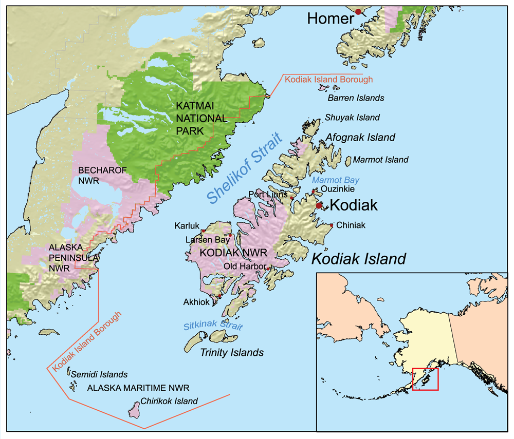 These awesome bears are believed to have been isolated there since the last Ice Age over 10,000 years ago. Because of the abundance of food on Kodiak Island, they have smaller home ranges than any other brown bears and have no need to defend territories. Starting in May, the bears feast on a salmon run that lasts into October. All five species of Pacific salmon run wild throughout most of Kodiak Archipelago.