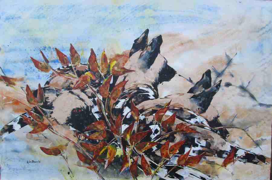 Dogs in Mopani 1, acrylic on loose canvas, 70 x 105 cm lo res