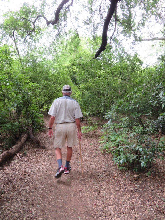 My dear dad, exploring the soft-footfall forest path,