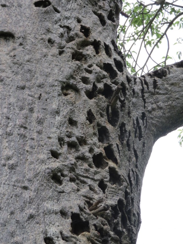 Thinking food, here is the pockmarked Honey Gatherer’s baobab, a landmark in this special place, where the local Changana people still harvest a pot of wild honey regularly..