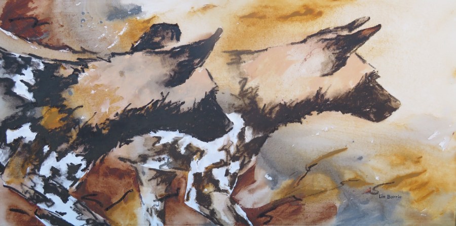 Hunting, mixed media on stretched canvas, 2 x 4 feet lo res