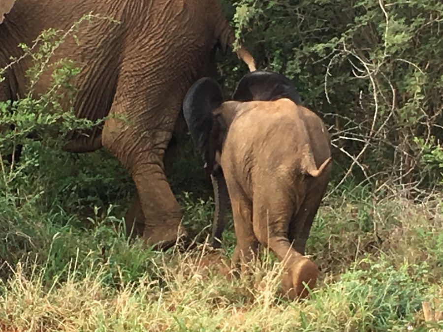 a feisty baby hightails it after shouting at our safari vehicle…