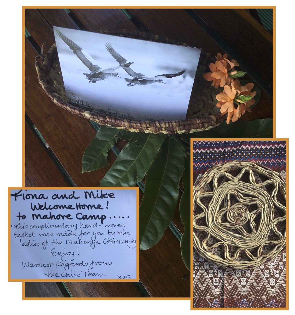 Warm welcome home to our returning guests..basket hand-made by the mahenye ladies…