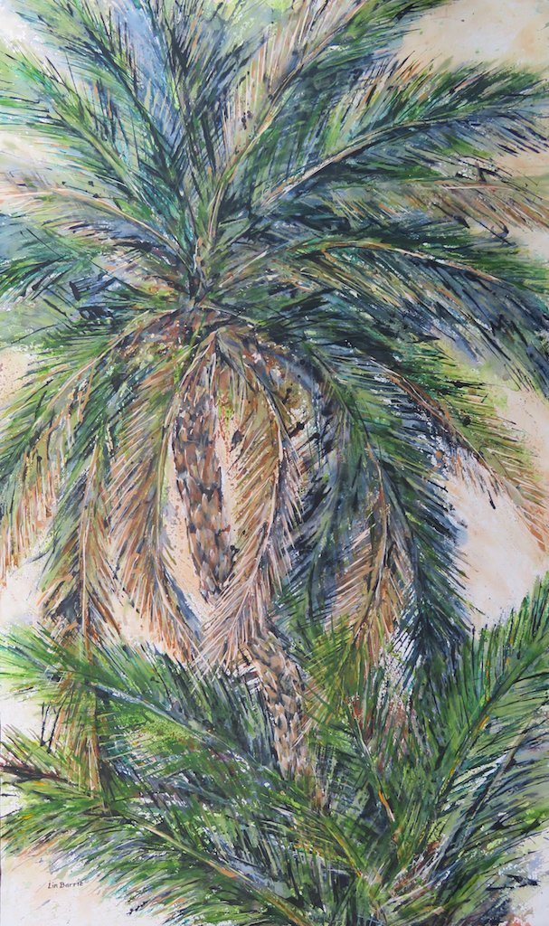 Phoenix reclinata, acrylic on loose canvas, 145 x 86 cm, is one of the many indigenous palms I love painting,