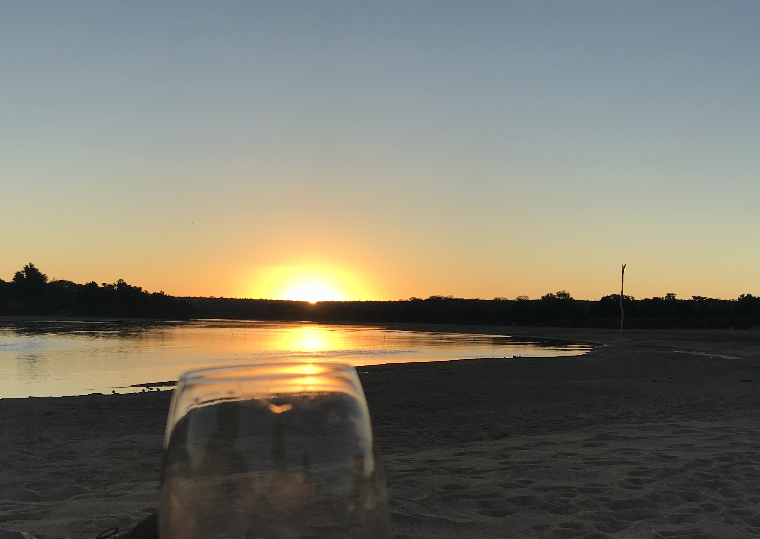 my sunset in Africa, Save River with a glass of Painted Wolf Wine….mmmmmmmm