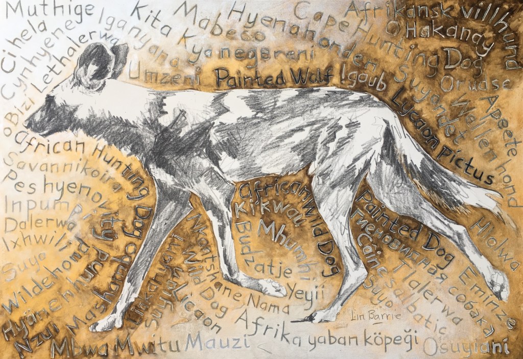 and no matter what you prefer to call Lycaon pictus, its all the same glorious animal! As reflected in my artwork below , “What’s in a Name?”, monotype, metallic acrylic and oil bar, 84 x 118 cm.