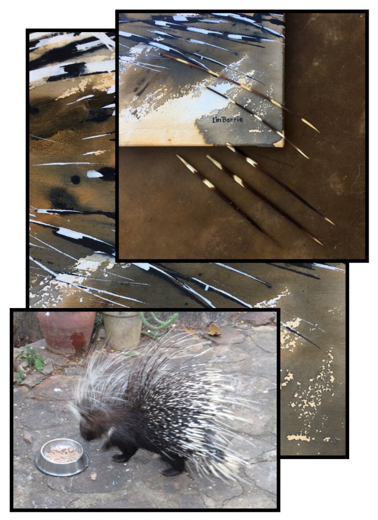 Porcupines entrance me, and one in particular, Mr Nhungu, visits our bush garden regularly to nibble at the leftover dog food, or more happily chew on the bark of my favourite trees! And so of course, I paint quills……