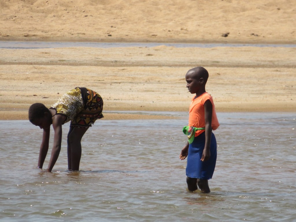 As we cross the great Save river, back towards Chilo Gorge Lodge and our fish lunch, young Mahenye girls are walking backwards through the cool water, trawling with their hands to catch their fish lunch – gobies on the sandy river bed!