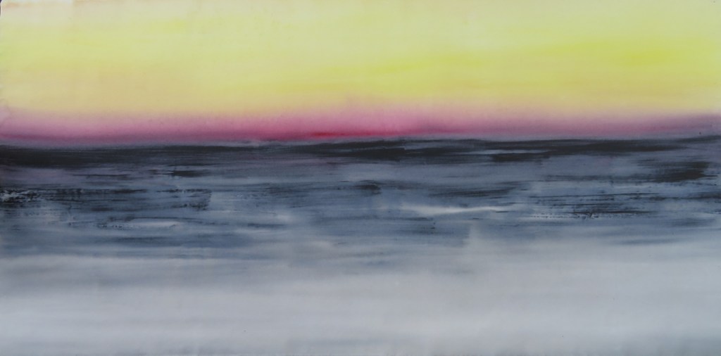Strange new dawn, acrylic on loose canvas, 85 x 180 cm