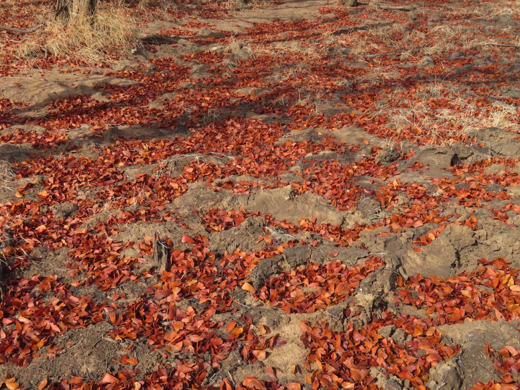 amidst drifts of gold and red fallen mopani leaves…