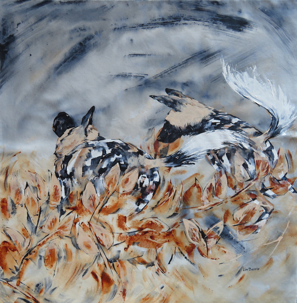 Lin Barrie states: “Through my art, and my writing, I feel an intimate connection with the natural world, and from my extensive field sketches of wild animals, people and landscapes, I create larger works on canvas.