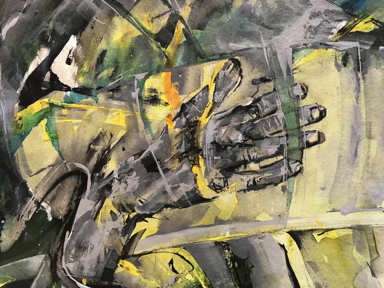 Lin Barrie, “Hands on Hearts”, acrylic painting on canvas, 90 x 128 cm