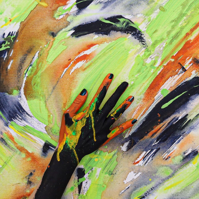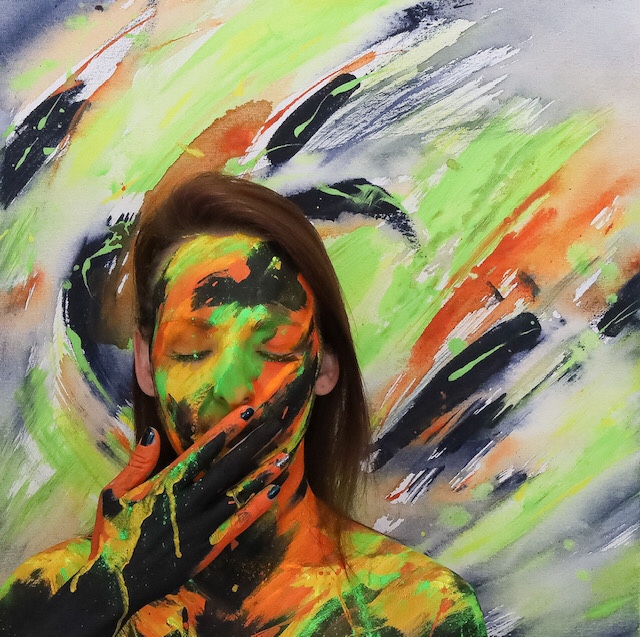 This New Year of 2021, I have something to hang straightaway on your wall…especially for you during stay at home lockdowns… energize your space! My art collaboration, with make up artist Kelli Barker … (photography by DaXiOn and Lin Barrie), uses my original painting Diptych called “ Energy” and my wallpaper/ fabric print called “Autumn” as backdrops for 3D body art. During Lockdown, these six prints are available to order and hang on your wall…a reminder during these COVID times and enforced lockdowns that we, as social animals, need to be gentle with each other, caring of ourselves and aware of the creativity and force for good within each and every one of us….. 1. Energy, Colour, Inkjet print on canvas, limited edition, 12 x 12 inches: