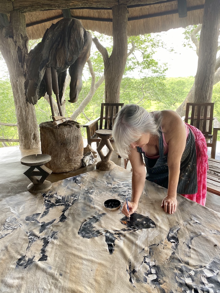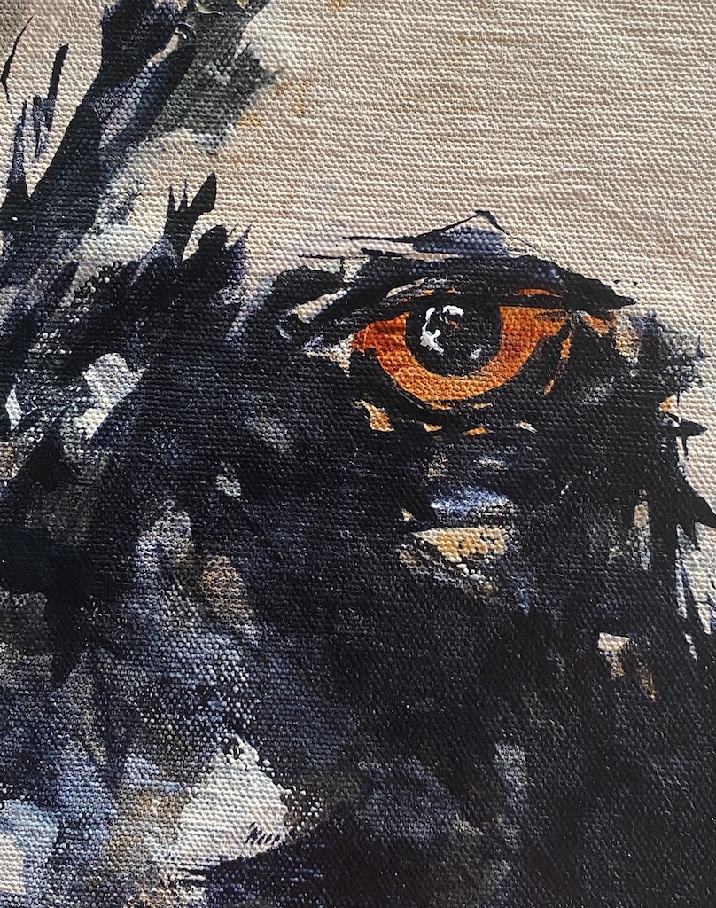 Working from my bush house, I paint large canvases, overseen by another natural predator, the vulture!