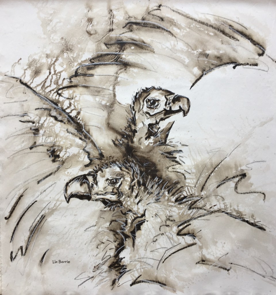 Vultures and eagles follow naturally after wild dogs, cleaning up and maintaining healthy environments, and they are dramatic subjects for me to sketch of course… Vulpro creates great awareness of the importance of these characterful birds in our ecosystems…
