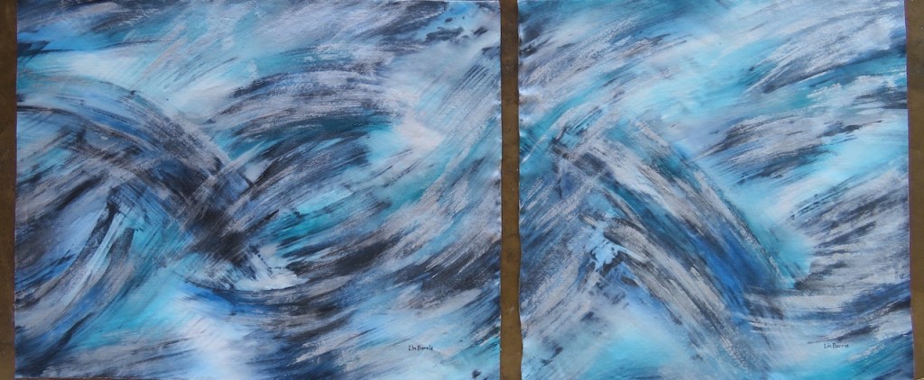 Lin Barrie, “A River Runs, (diptych), I and II”, acrylic on loose canvas, 80 x 100 cm and 80 x 80 cm