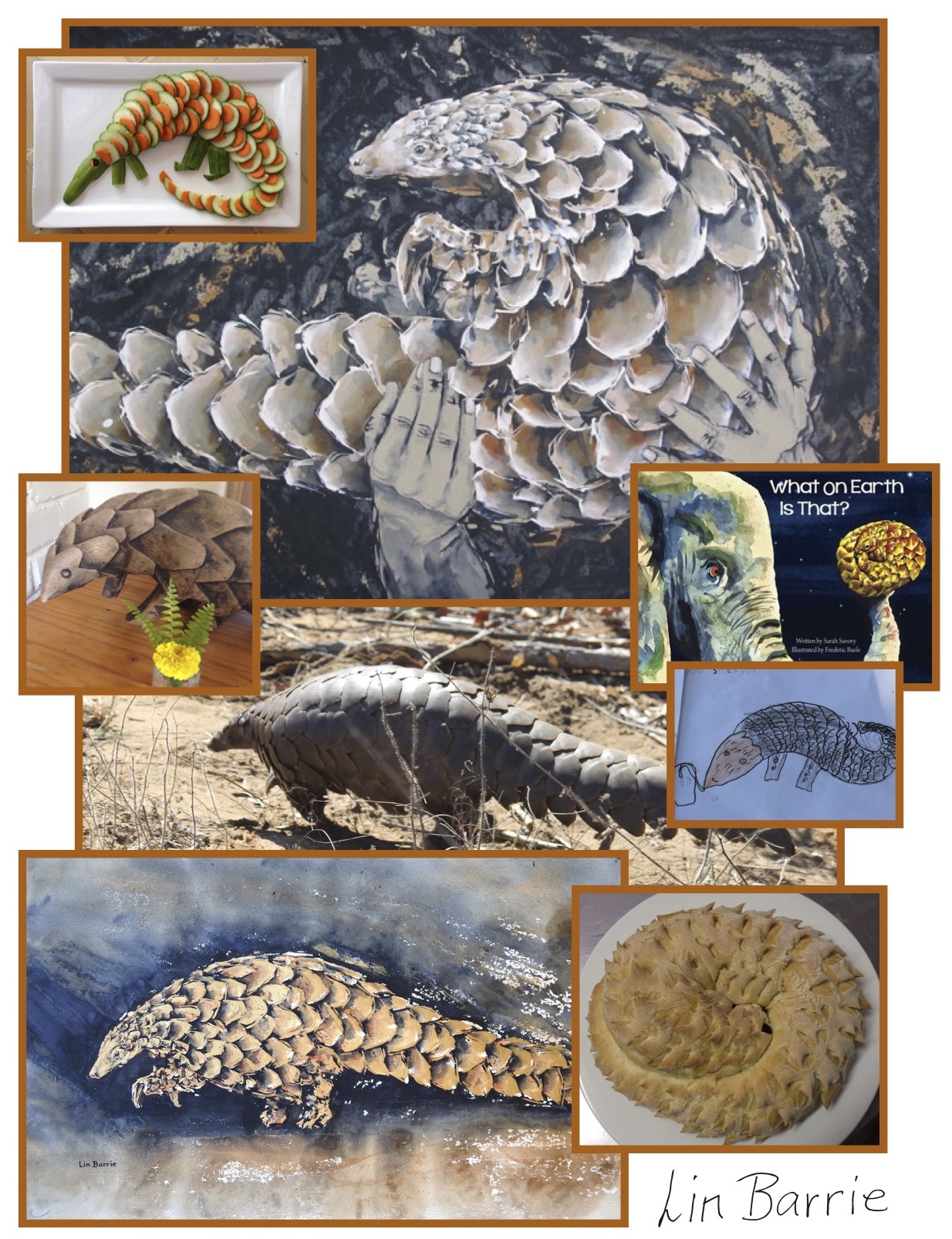 Thinking books and stories, I support Tikki Hywood Trust in protecting Pangolins in Zimbabwe, (endangered through the illegal wildlife trade). Friend Sarah Savory has written stories about these fascinating animals, which we launched and read to children at a “pangolin weekend” at Chilo Gorge Safari Lodge. My own art and photographs, Child Art, Food Art , all are valuable tools in learning about endangered animals, endangered environments. Creative food, stories and art– what better way to engage children and adults alike!?
