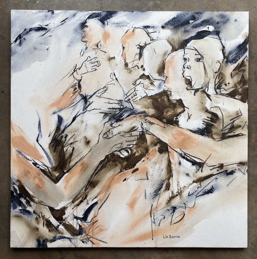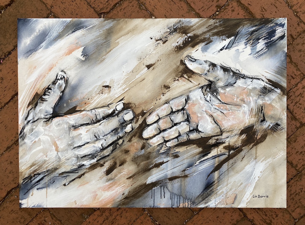 “To Touch or Not to Touch”, acrylic/charcoal on canvas, 3 x 3 feet, online “Summer Exhibition” at Gallery Delta, Harare:
