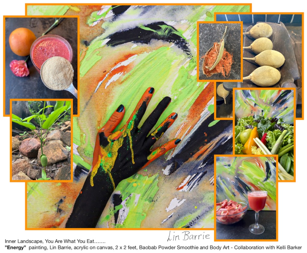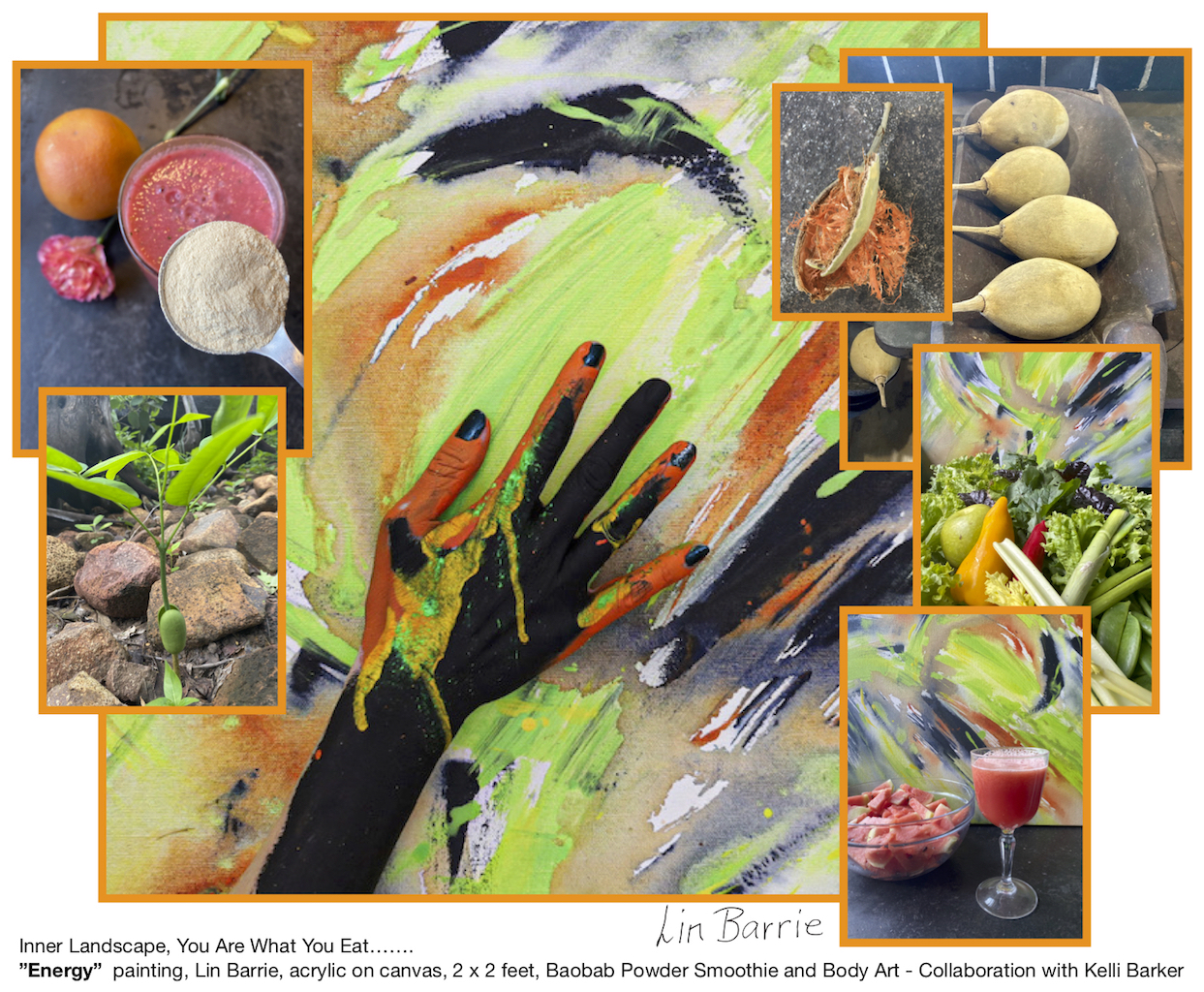 My Fitness and Health Trainer daughter Kelli Barker is also a talented Make up artist. She and I use baobab powder constantly as an addition to our food and we collaborate on photo shoots, my painted art and her food and body art!
