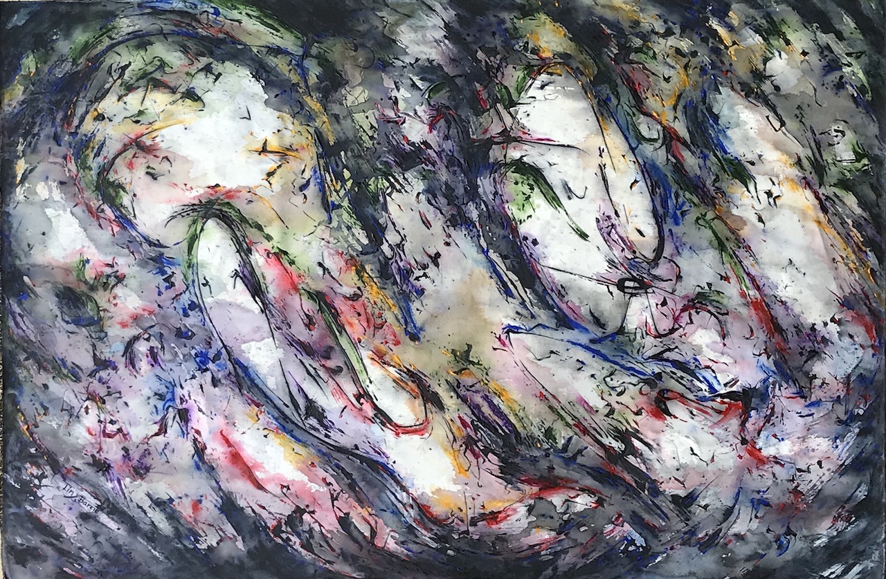 I have taken Water and Fire as subjects for my abstract “landscape”paintings, symbolism of the trials of life, the challenges faced by men in their fair relationships with women, reflecting the mood of the poem….