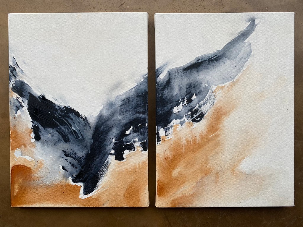 Taking flight, my abstraction of that universal Swoosh symbol, the Nike flash, Winged Victory, Nike, a diptych, is acrylic on stretched canvas, each 42 x 30 cm …… is it a bird in flight or a swoosh?! …..either way it is a symbol of FREEDOM!