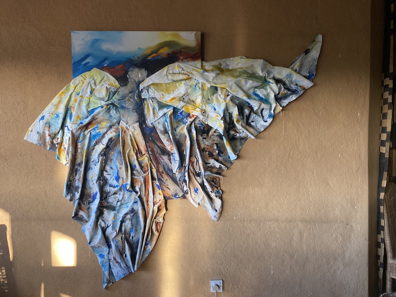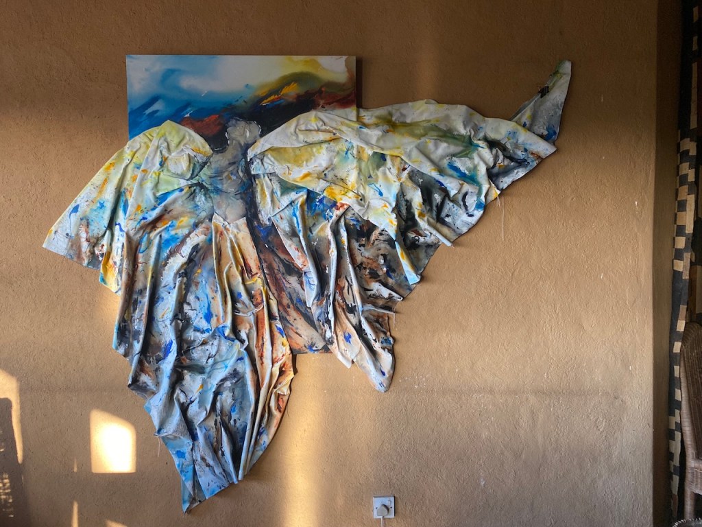 Winged Victory; Beyond Beyonce, will be an acrylic/charcoal/collage installation on stretched/draped canvas inspired by the marks of sparks and fire on canvas, creativity and creation… Size 4 x 3 feet plus ‘wings’