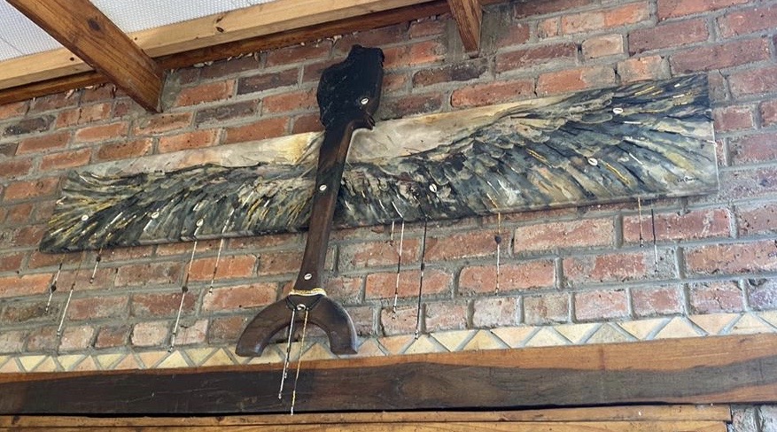 This below is one of the burnt wooden bird sculptures which I rescued from my own house fire, which I gave to Johnson to re-invent…a phoenix rising from the ashes, a ‘burnt offering”… we liked the idea of “re-inventing”, “resurrecting” it…….. much like a phoenix.
