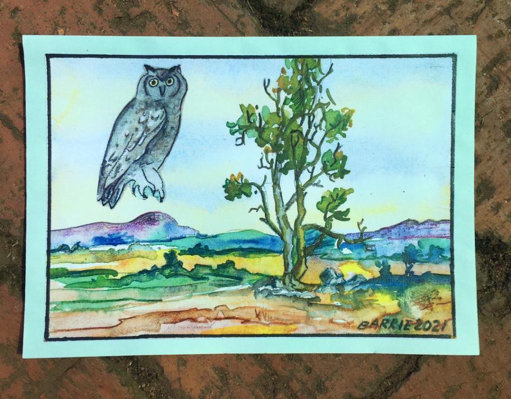 Lying in bed I listen to Dads spotted eagle owls calling most nights, plus the barn owls, wood owls and greater galagos (bush babies) which thrive in the trees and dense gardens of the Brooke. As I imagine the flight of the owls out there in the night, I am excited for the “Freedom” exhibition that Helen Lieros and Derek Huggins were planning before we lost them also to COVID – I am so honoured to be part of that, as the delta trustees are forging ahead, honouring her wishes and setting up the show as her own last wish, her “last show”….