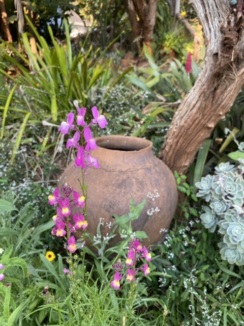 One of our installations-a garden totem erected by Dad, is a leadwood fencepost from the cattle era of the Save Valley Conservancy, my other treasured home. This post presides over our fire pit, with offerings nestled in every notch….