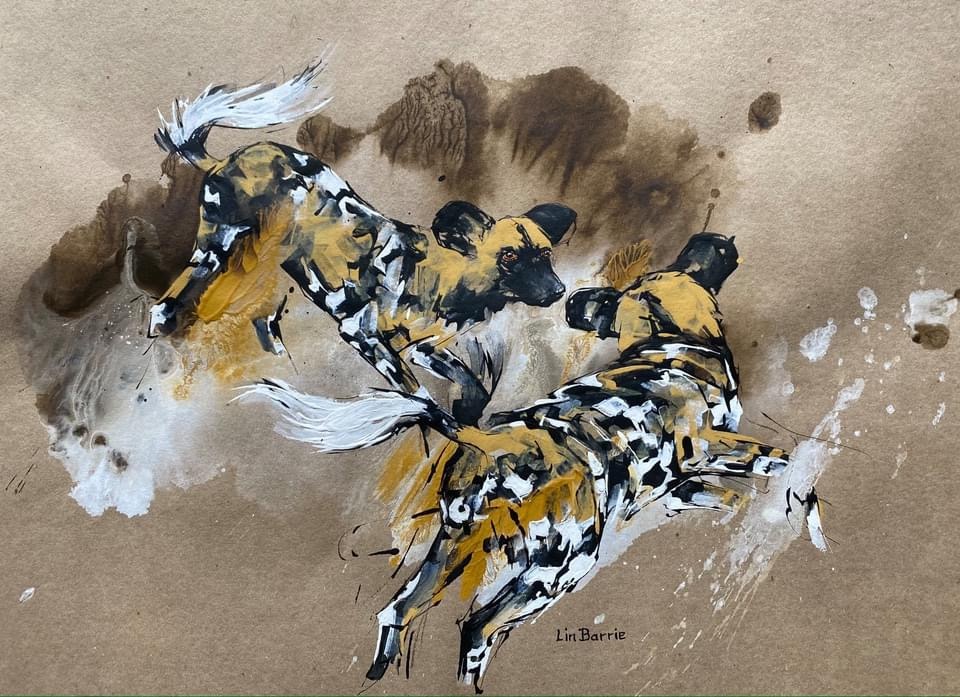 I am thrilled to be a part if it, with my sketches of African wild dogs, Lycaon pictus- an endangered predator which nevertheless is doing well in Zimbabwe within the Save valley Conservancy , Malilangwe and Gonarezhou National Park, plus the other wilderness reserves of Mana, Hwange and Matusadona, in Zimbabwe. African Wildlife Conservation Fund and Painted Dog Conservation do an essential and efficient job within Zimbabwe, of monitoring, intervention snd education outreach for these charismatic wild dogs (aka Painted Wolves, Painted Dogs)