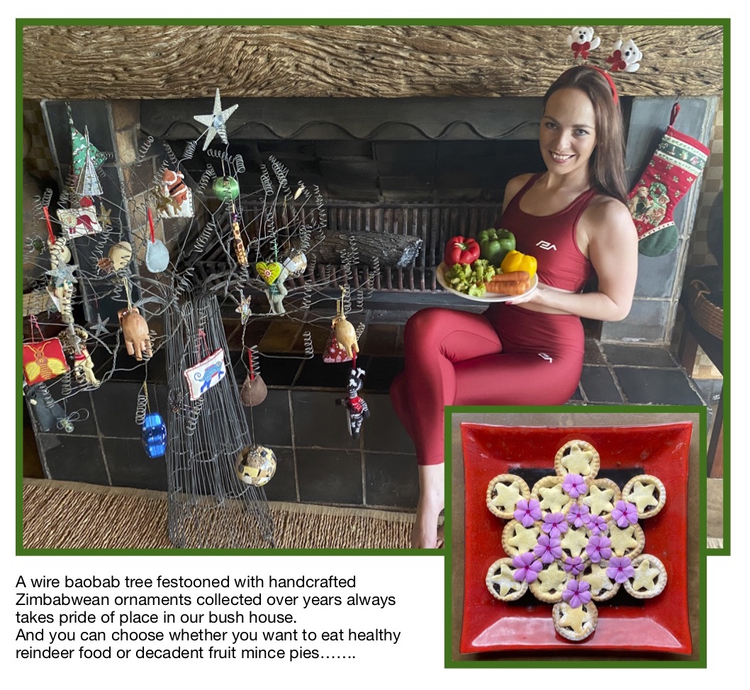 I have a treasured wire baobab that sits in our lounge year round, and at Christmas the children decorate it with the knitted Gogo Olive animals and beaded embroidered ornaments that I have collected over years…