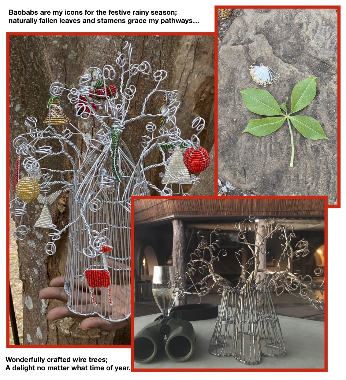 I collect the wonderful wire baobabs that are sold on the side of the road. These wire trees grace my home and many tourism lodges such as Chilo Gorge Safari Lodge, all year round.