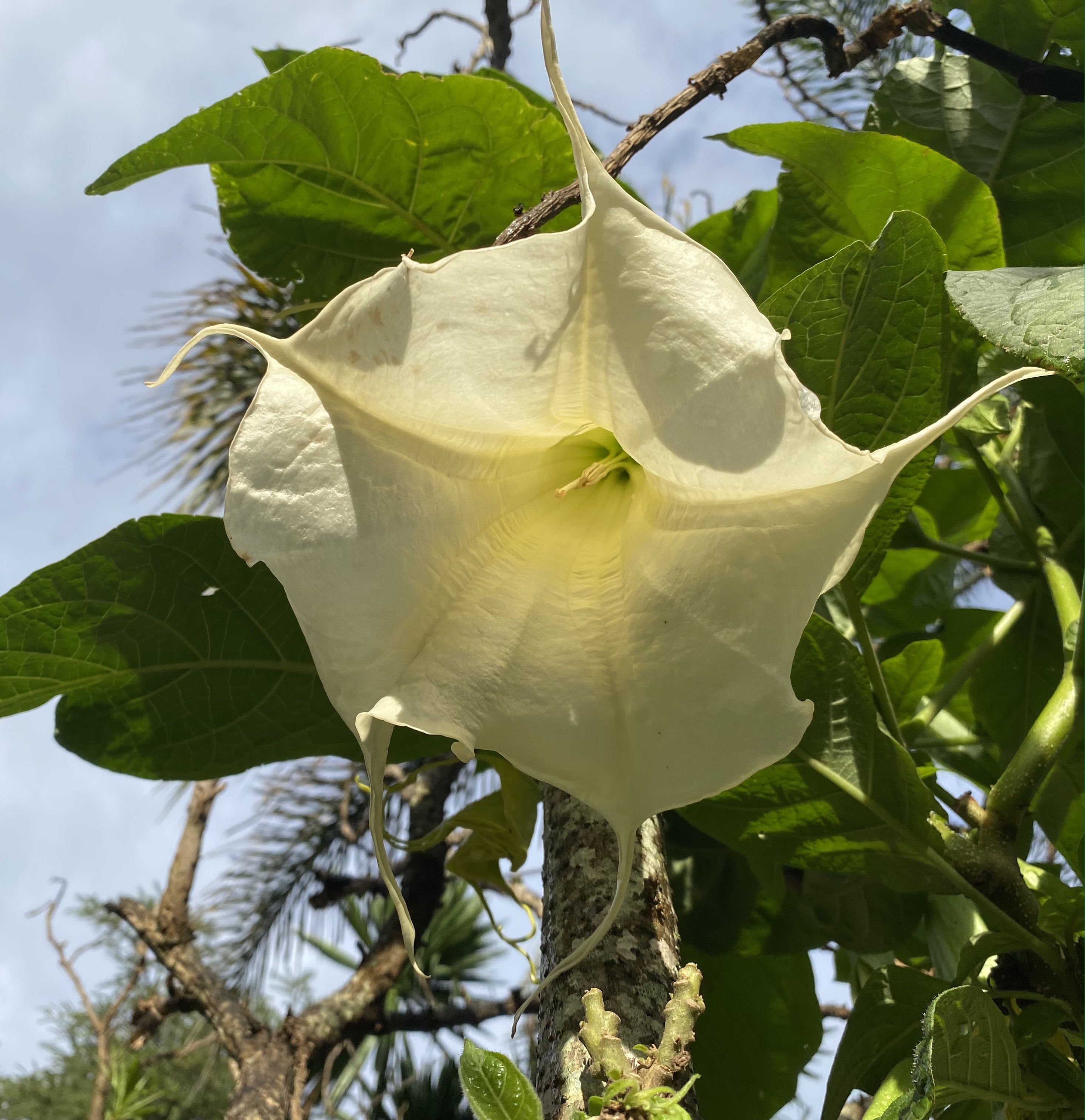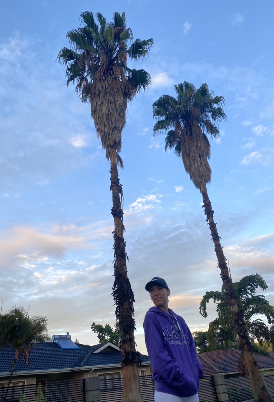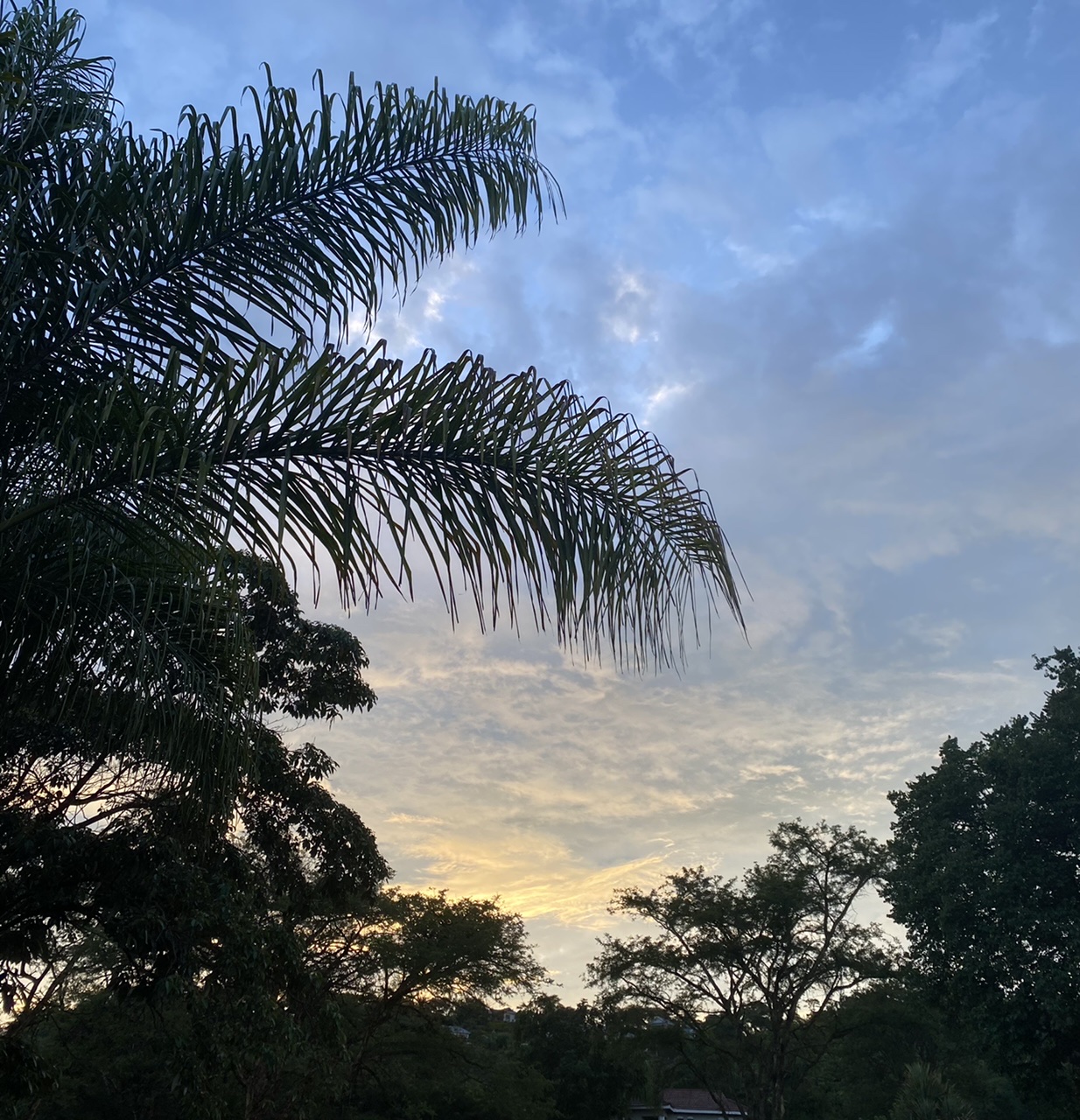 Bright skies behind palms start our day as we walk …