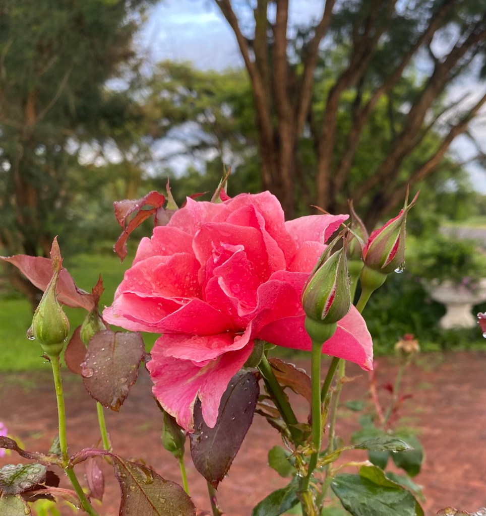 The ‘bright skies’ above us, the green wetland around, and a perfect pink rose, dewy in the early morning light, brings to mind our latest project-