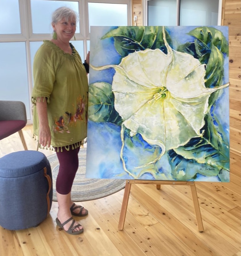I have completed a large painting if that inspiring Moonflower seen and smelt on my daily walks – (and inspired hugely by my muse Georgia O’Keefe)… seen here in the exciting new creative showroom that Dulux Zimbabwe has created in Harare. more blogs on this Dulux collaboration to follow! Their company ethos, ”to do good”, truly resonates with me. Bright Skies indeed…