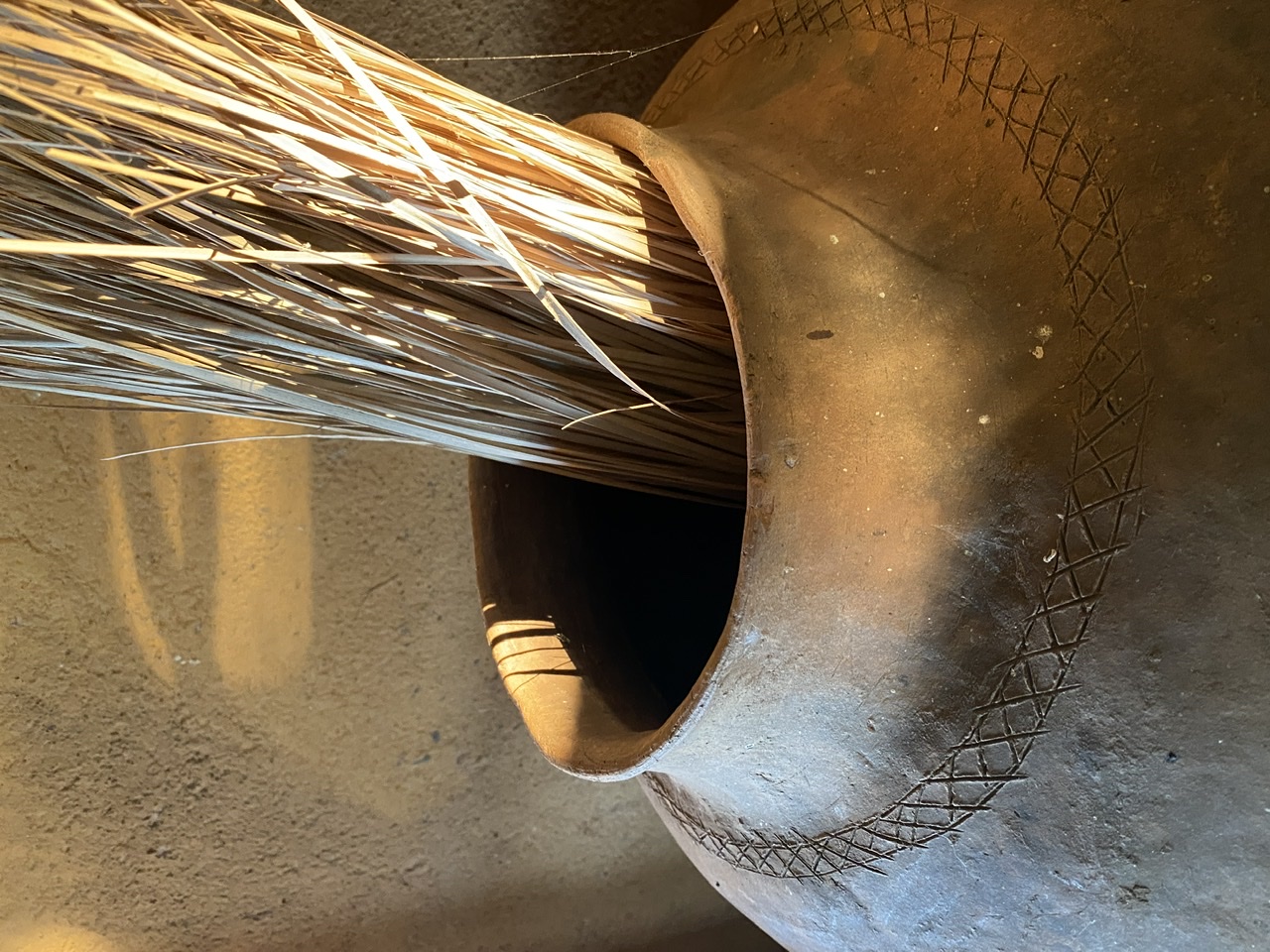 a grass broom – a satisfying paintbrush …Clay pot and grassbroom – handmade art, craft, culture